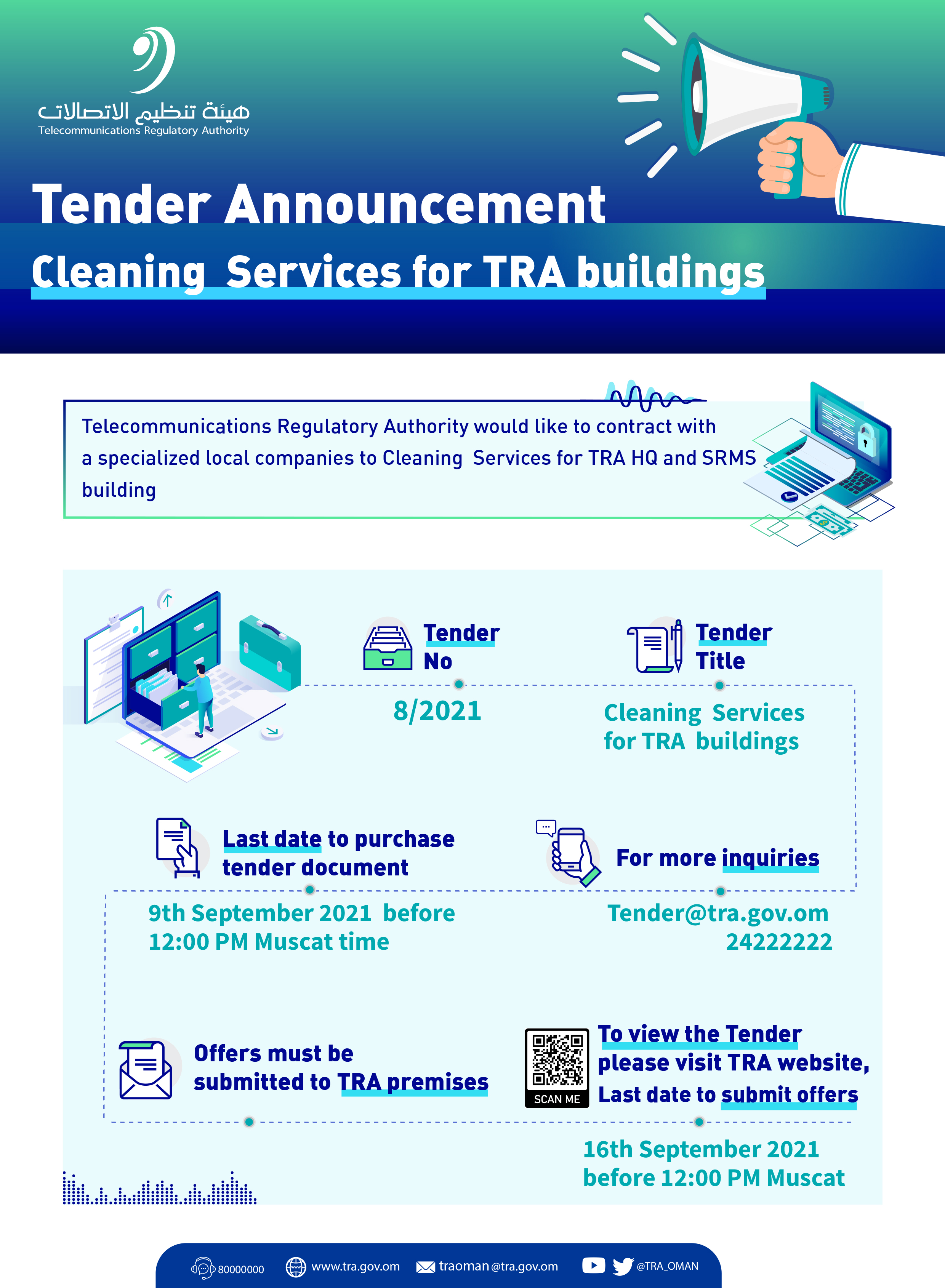 Alternatively, tender document may be requested by letters or email to: Tender@tra.gov.om